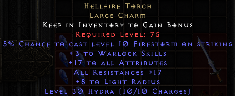 Hello. Saw your trade at https://diablo2.io/trade/hellfire-torch-t1775365.html. Is this still available?