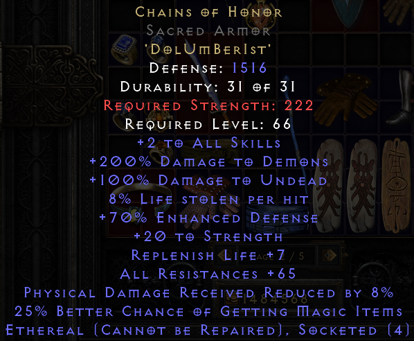 Hello. Saw your trade at https://diablo2.io/trade/chains-of-honor-t1775458.html. Is this still available?