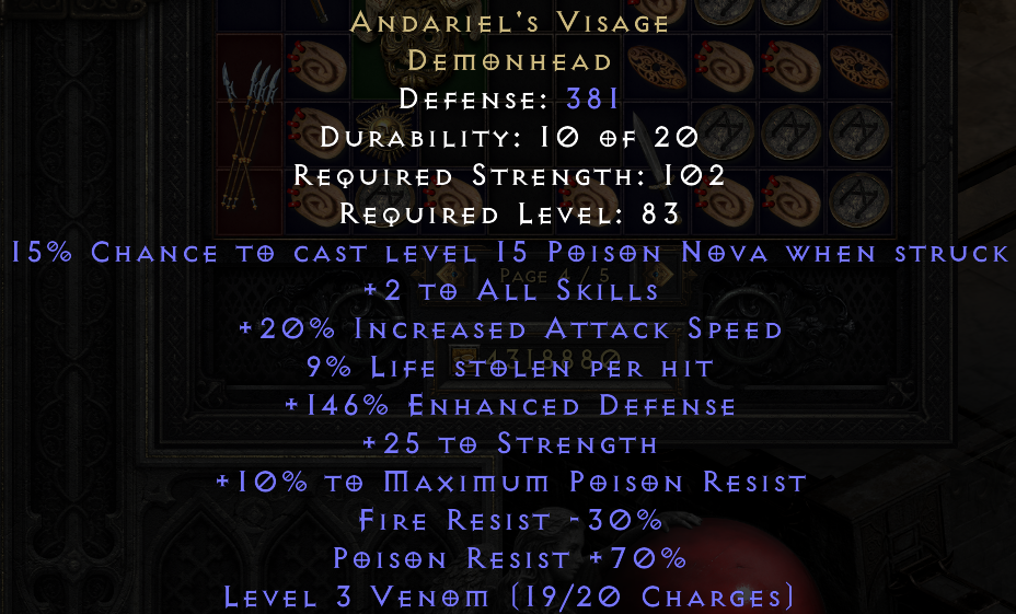 15% Chance to Cast Level 15 Poison Nova When Struck