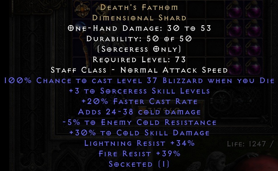 100% Chance to Cast Level 37 Blizzard When You Die
