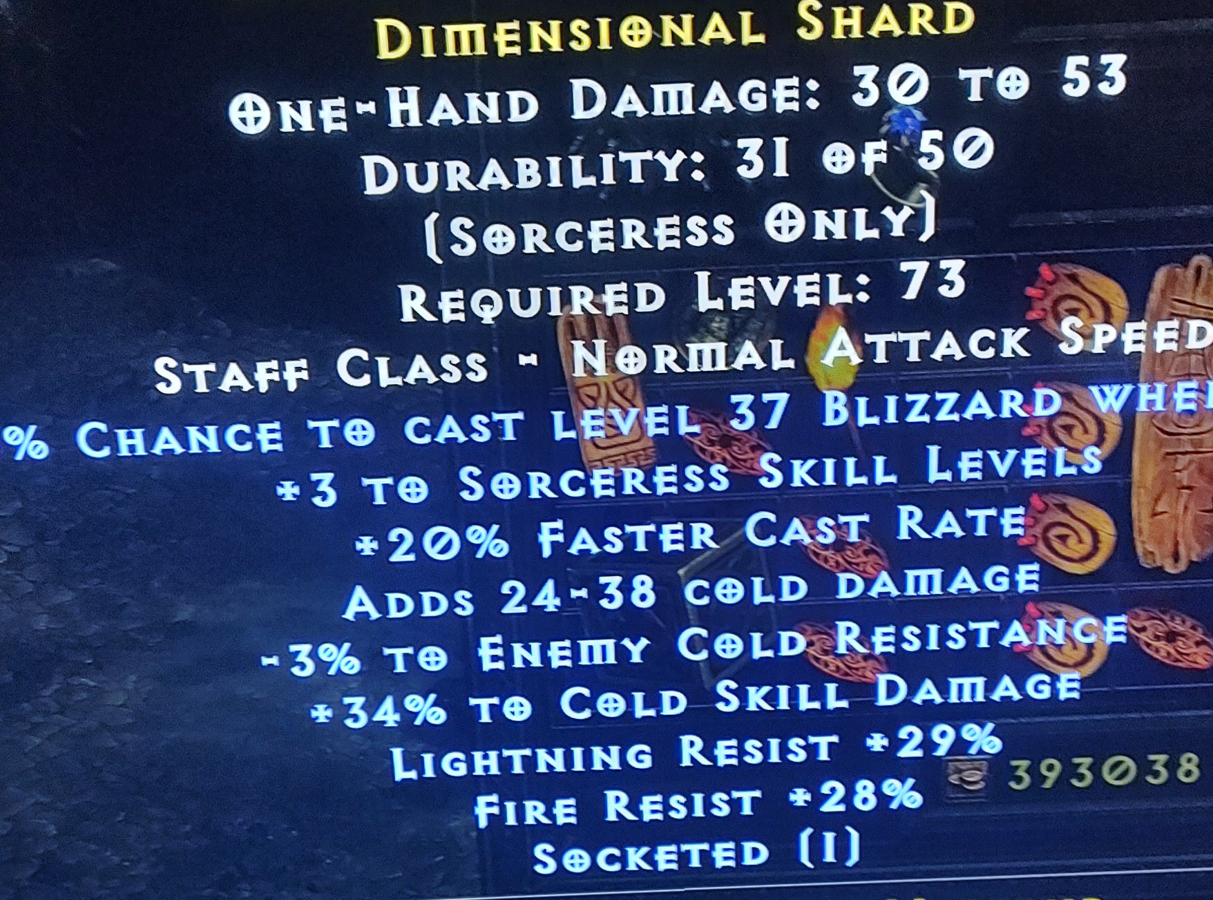 +30% cold dmg, 34% lite red, 39% fire res LF 3 Jah