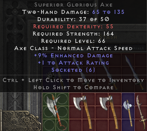 SupEth 6os Glorious Axe +%9ED +1AR DMG 65 to 135