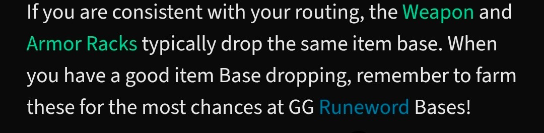 A guide on maxroll says that "If you are consistent with your routing, the Weapon and Armor Racks typically drop the same item base"