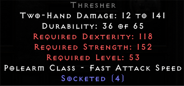 Hello. Saw your trade at https://diablo2.io/trade/thresher-t1786156.html. Is this still available?