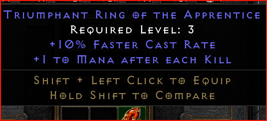Pairs well with ES for Sorceress also. I swap it w/ Viper Magi pending where I'm going/what is terrorized.