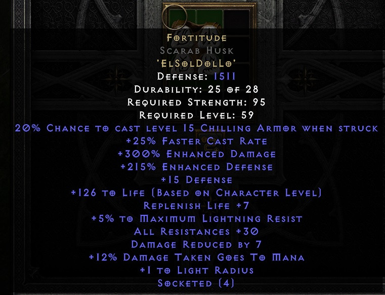 If you can't afford Fortitude, The Gladiator's Bane is pretty solid also. High flat damage/magic reduction, def, 30% FHR, 50% poison reduction and CBF. Granted level 85 requirement, but I got one for 2 Perfect Amethyst,;and ironically found one a couple days later.Mirrormn wrote: 4 days agoVmagi is underrated as a merc armor, it's one of the best things you can use before Fortitude, I think. Especially if you're gonna do Trav/Meph/ Baal, it singlehandedly nullifies Council Member HydrasNecrarch wrote: 5 days agoJust dropped a unique Serpentskin Armor from big D. 35 all res and 11 mdr ! My merc loves it (his previous rare was sooo bad)
