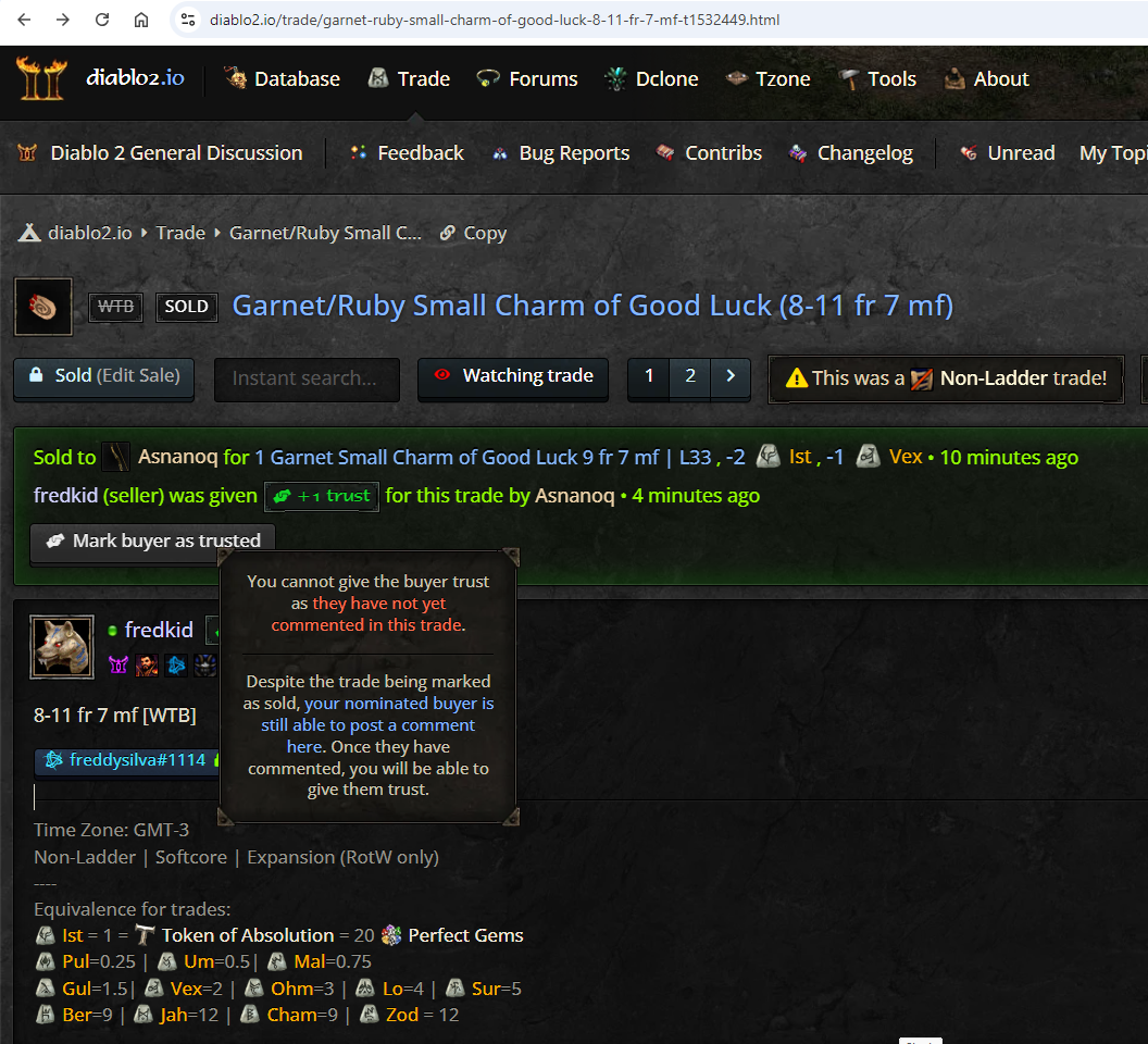 One more thing, when I was closing the trade, Asnanoq appear as one of the buyer suggestions (OK), and I clicked in the suggestion (didn't type the name) and the trade appears to be linked to the right user (see the prints)