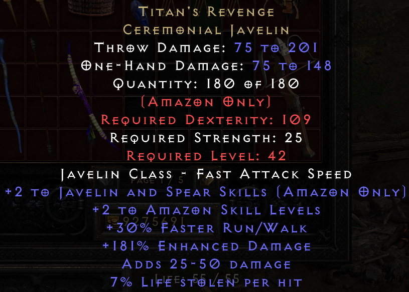 +2 to Javelin And Spear Skills (Amazon Only)
