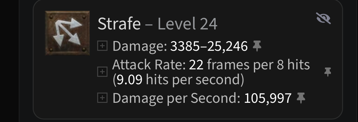 Scellis24 wrote: 41 minutes agoFully geared and with Concentration active, I believe the tool tip says max dmg of 12Kish using a socketed Windforce. With Faith it’s a good bit lower like 8-9k on tool tip, but faster. So it’s either shoot faster or hit harder… mainly preference but on paper, I think WF is the DPS winner.ganseng wrote: 50 minutes agohmm what dmg does it show on tooltip for your Strafe?