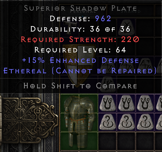 Max possible def roll on a +15% ED Eth Shadow Plate. What's it worth?