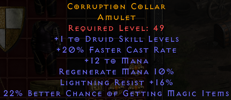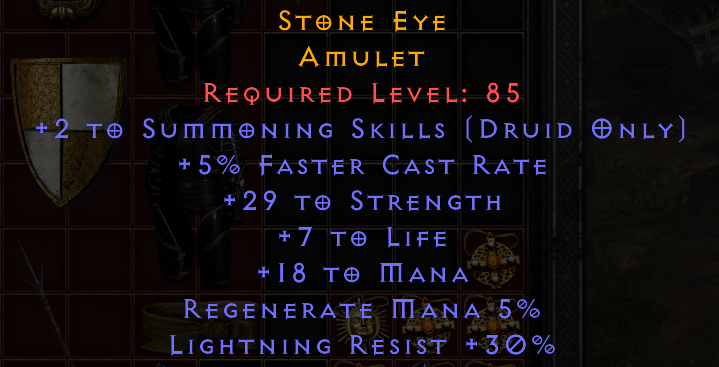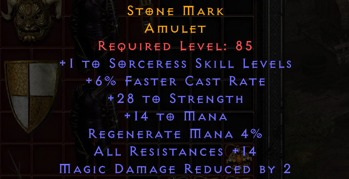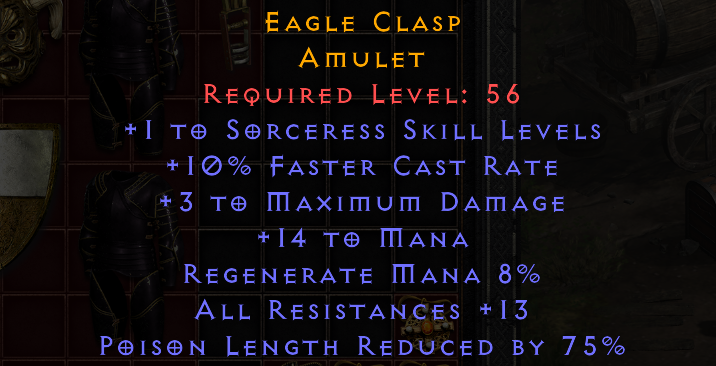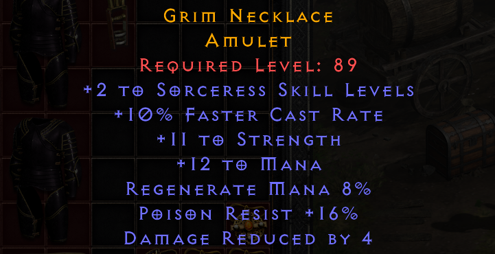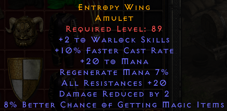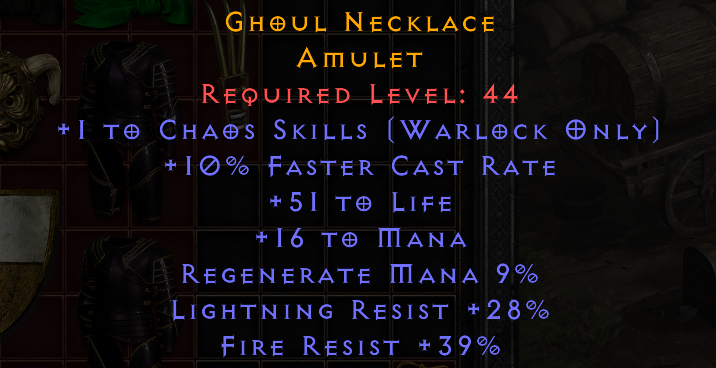 Chaos lock 1/6 , sorc 1/10, summon 2/5, ele 2/6: too low rolls on skills or fcr, no value or some pgems