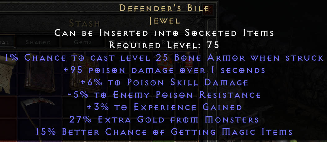 1% Chance to Cast Level 25 Bone Armor When Struck