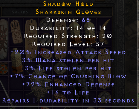 wish the gloves had some dex/str or resists, however i'm pretty happy with the leech while playing. Any of these have value or should i be looking out for specific stats to know when I hit a gem?