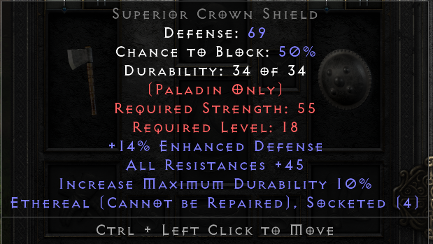 People are taking Eth paladin shields only cos of higher armor on it but this one got none - much lower than any exceptional shield.