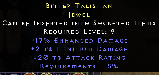 This jewel has no value because it can only be put in a weapon with the min dmg and in weapons you will not use this.