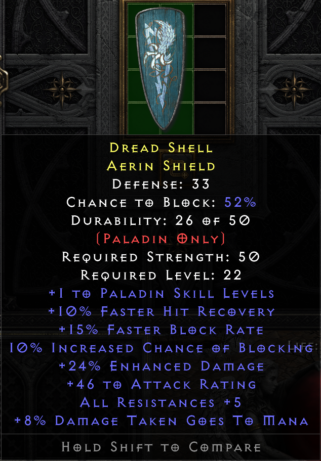 Charsi. Lld paly uses 4os shield to put jewels in it.