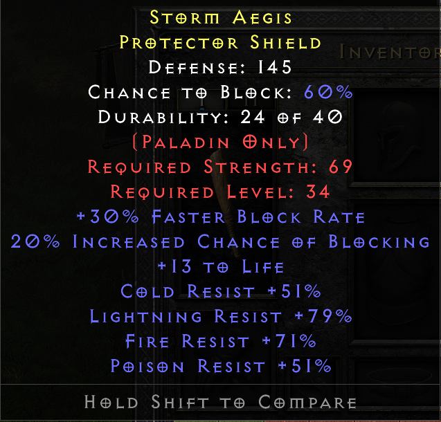 curious about worth of this shield as I haven't found many with 250+ total res as welll as fbr/icb & life