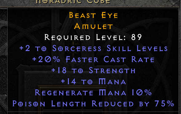 The name of the amulet is very fitting. 10/10 would slap on a Nova Sorceress. I would expect this to go for many Jahs as well.