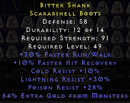 Runwalk and FHR are great. You get top dollar for tri-res Boots when the sum of the res is greater than or equal to 100. You can still get good value if the total res is 90+ but you'd need light, fire, and poison for that.