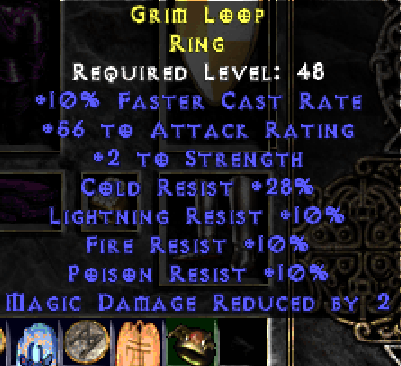 Faster cast and 10 all resists are two very nice affixes, but the others are bad : 56 to AR while it can go to 100+, 2 to strength can go to 20, 18 cold resist can go to 30, mdr only 2 is not a good affix neither.