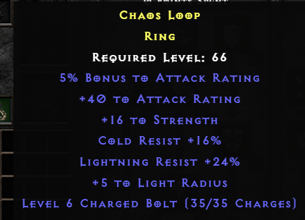 Rare Ring 5% ar 40 ar 16 str 16 cr 24 lr 5 light radius 35 charges Charged Bold 6 | L66 | 40 total resist
