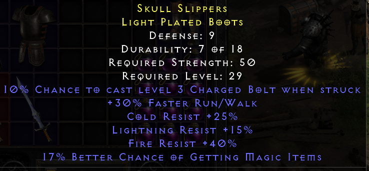 First affix is useless (with 10 fhr instead or stats like str/dex would be incredible) and light res is a bit low, but these are nice Boots for sure. MF is the icing on the cake.