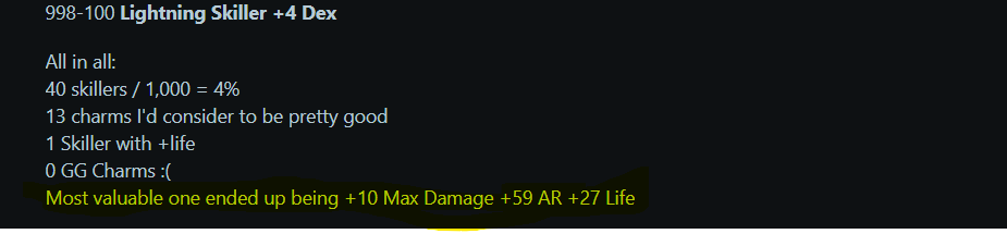 But then was reading a page where someone rolled Baal charms 1,000 times and said this one which is similar was the best that he got.