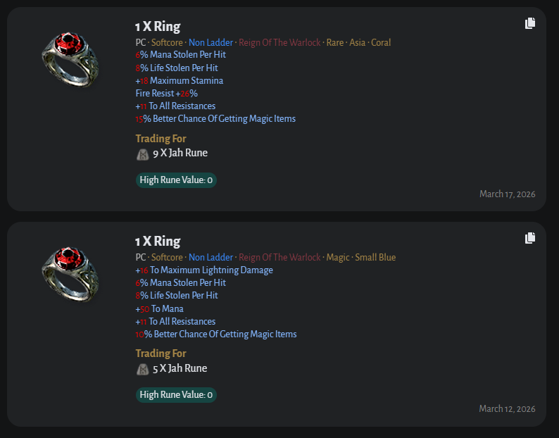 Pc Softcore - Non Ladder Reign of The Warlock Rare Asia Coral