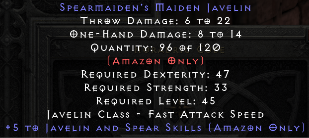 This post was marked as the best answer.For javelins, compare to Titan's Revenge. If it's not as good, it's value less.