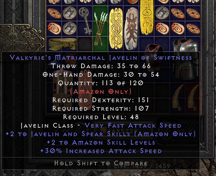 Titan's Revenge already gives +4 skills so you only have +30 ias as an advantage. IMHO titan's is still better in that comparison. As far as I know you need at least +5 skills (better +6) on a blue Javelin (and ias) to be something worth.