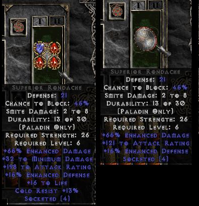 You can drop a Rondache with equivalent status and Level required 6 (or a Targe with Level required 3) on Hell.