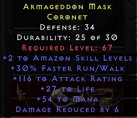 Definitely. Usually, an Amazon goes for a Lore and after that upgrades to Shako. This item is a great intermediate until you get a Shako. You can also Larzuk it for two sockets and insert 2 PTopaz in it to have 48% MF. Then you can say it is even better than a non socketed Shako if you prefer the 30FRW and 116AttR over the mana and HP, but keep in mind you already had to spent a Larzuk socket to achieve that. You can compare what you have here with a worse alternative to Shako and specifically only for Amazon and not for all classes like Shako. All in all, I would say this values around Um/ Mal and Mal/ Ist for a socketed version.