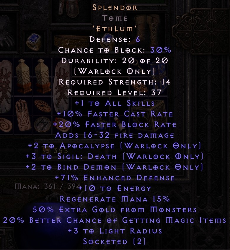 > Splendor is especially interesting for bases that provide something else, i.e. pally shields and even more necro heads. A Splendor with nice + skills can be quite interesting... even if unlikely to be GG.