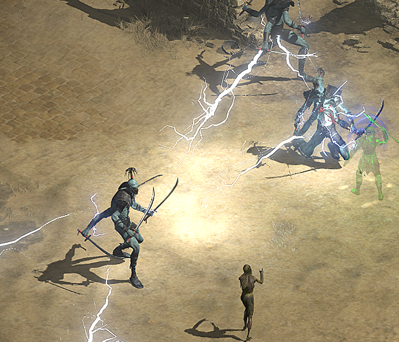 Such a warrior is able to call upon the Goddess' might to destroy her enemies, unleashing a bolt of lighting that arcs from foe to foe.